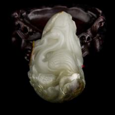 - 新疆和田黄皮一级白籽玉挂件 鸳鸯戏水 33克 琢艺轩实价:¥51000元